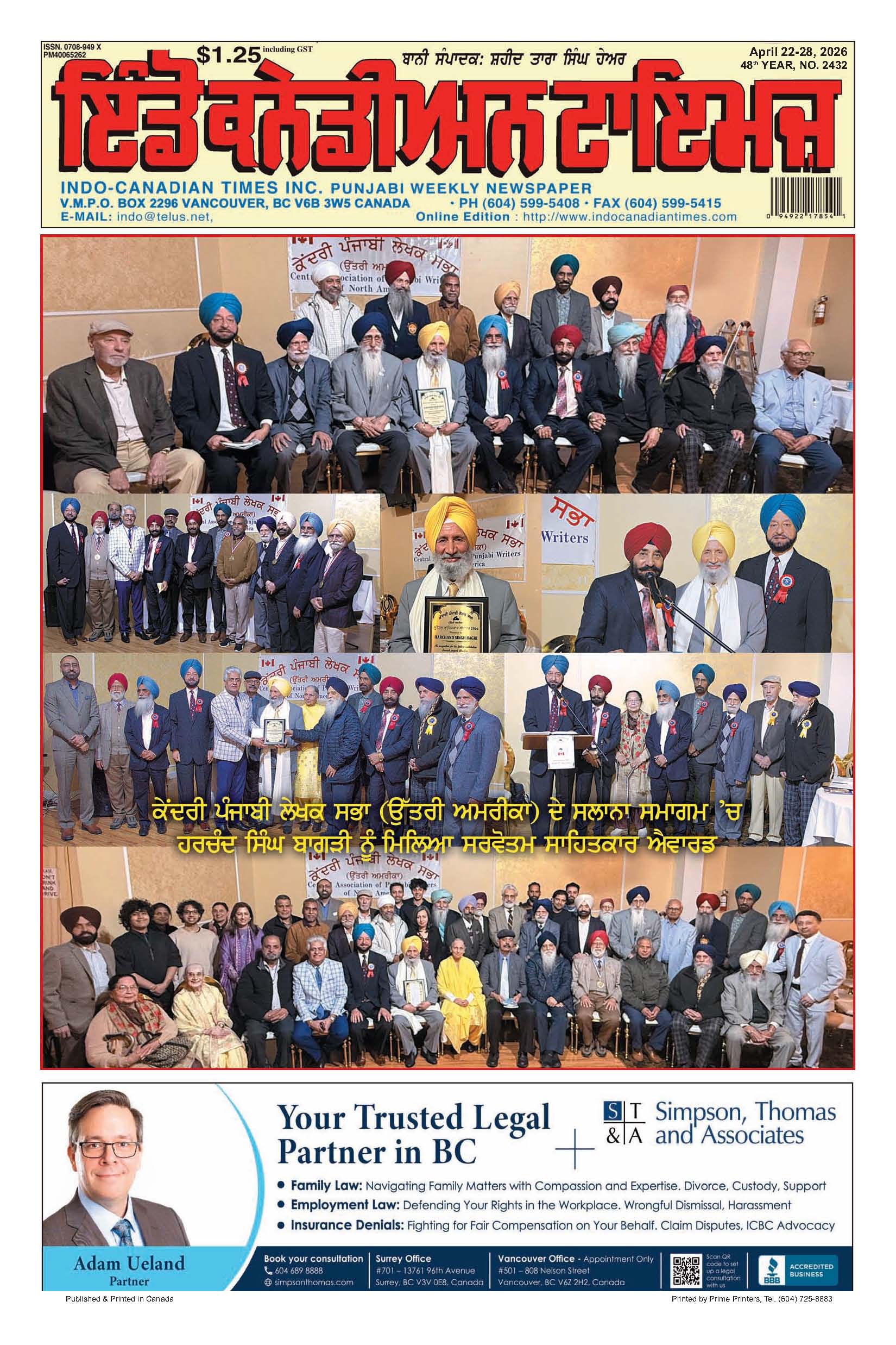 Apr, 21 20261984 ਸਿੱਖ ਕਤਲੇਆਮ ਦੇ ਪੀੜਤਾਂ ਨੇ ਇਨਸਾਫ਼ ਲਈ ਜਥੇਦਾਰ ਦਾਦੂਵਾਲ ਨੂੰ ਸੌਂਪਿਆ ਮੰਗ ਪੱਤਰ ਦਿੱਲੀ ਸਮੇਤ ਭਾਰਤ ਦੇ ਵੱਖ-ਵੱਖ ਸੂਬਿਆਂ ਅੰਦਰ ਸੋਚੀ ਸਮਝੀ ਸਾਜਿਸ਼ ਦੇ ਤਹਿਤ ਟਾਰਗੇਟ ਕਰਕੇ ਸਿ...